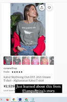 "Uçaktan düşen Afganlılar" çizimlerini, baskılı T-shirt ve benzeri giysi üzerinde hazırlayarak alışveriş sitelerinde satışa sunmak, bütün bu acıya duyarsız bakış açısının sonucu elbette. Ancak kabul edilebilir değil.
