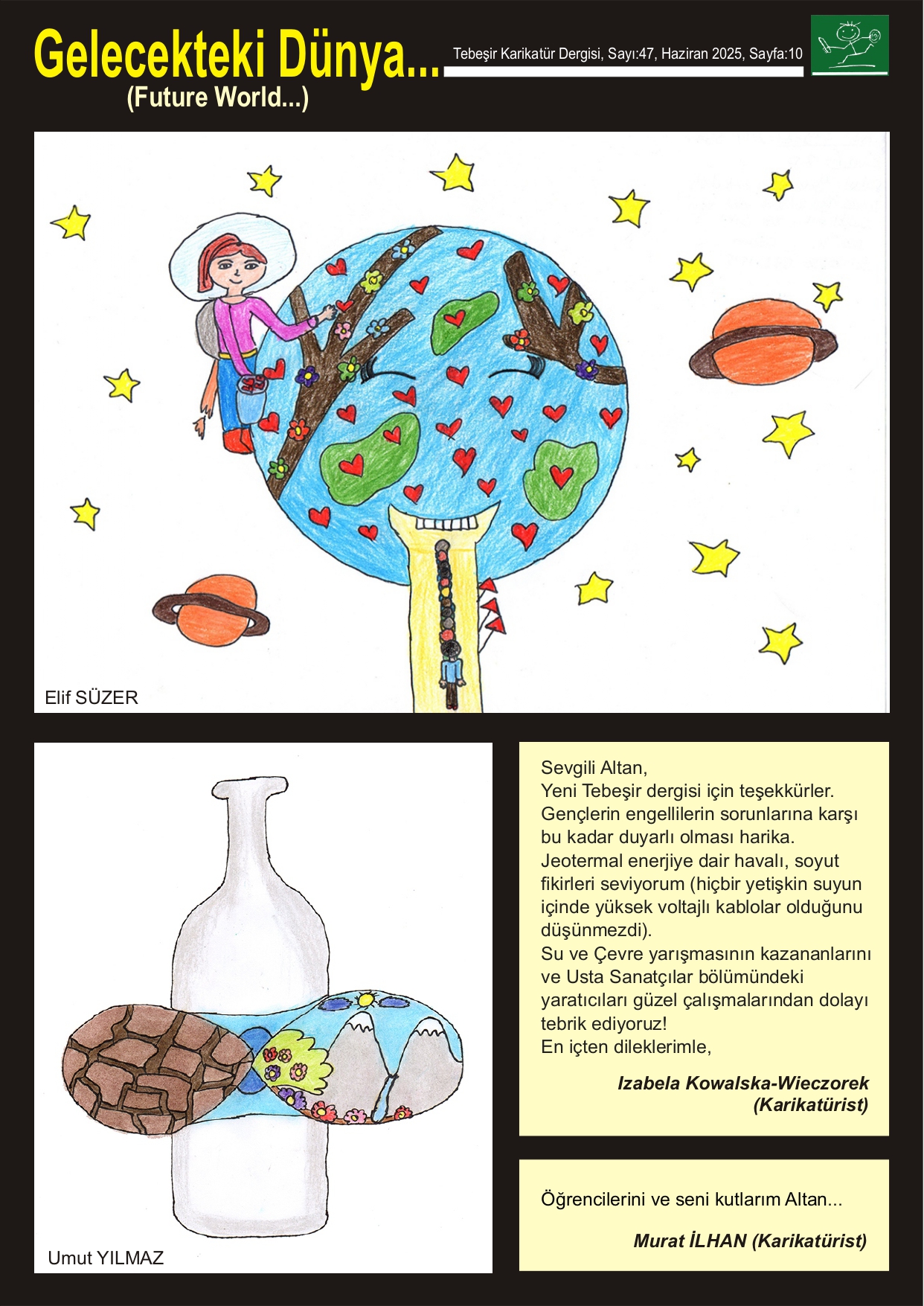 Dear Altan, thank you for the Yeni Tebeşir magazine. It is great that young people are so sensitive to the problems of the disabled. I like the cool, abstract ideas about geothermal energy. (no adult would think that there are high voltage wires in the water).